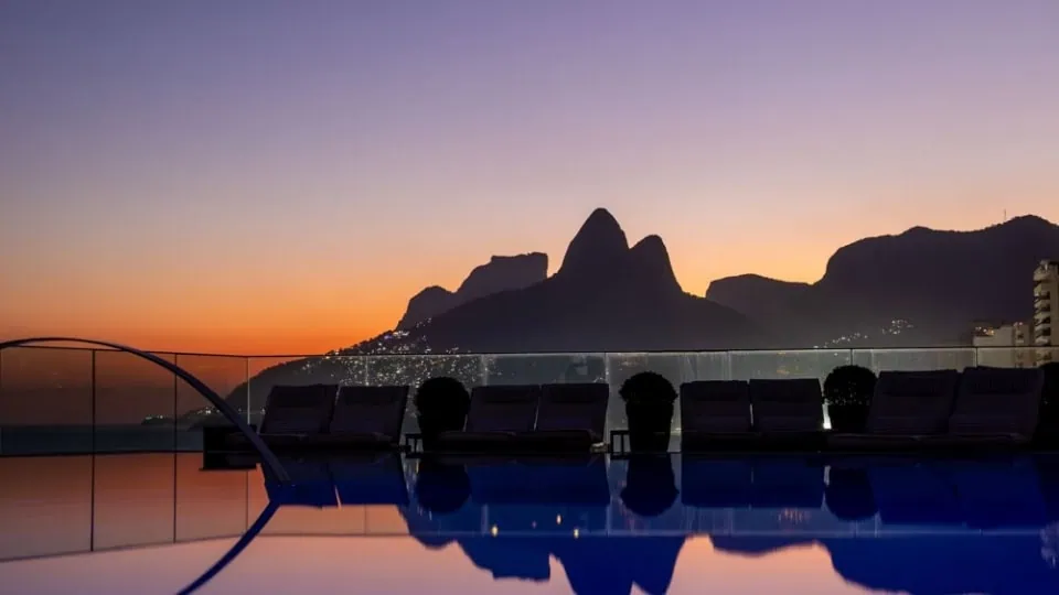 Guests always tell us sunset from the rooftop feels like a movie: music in the air, pink skies, and Ipanema shining below.