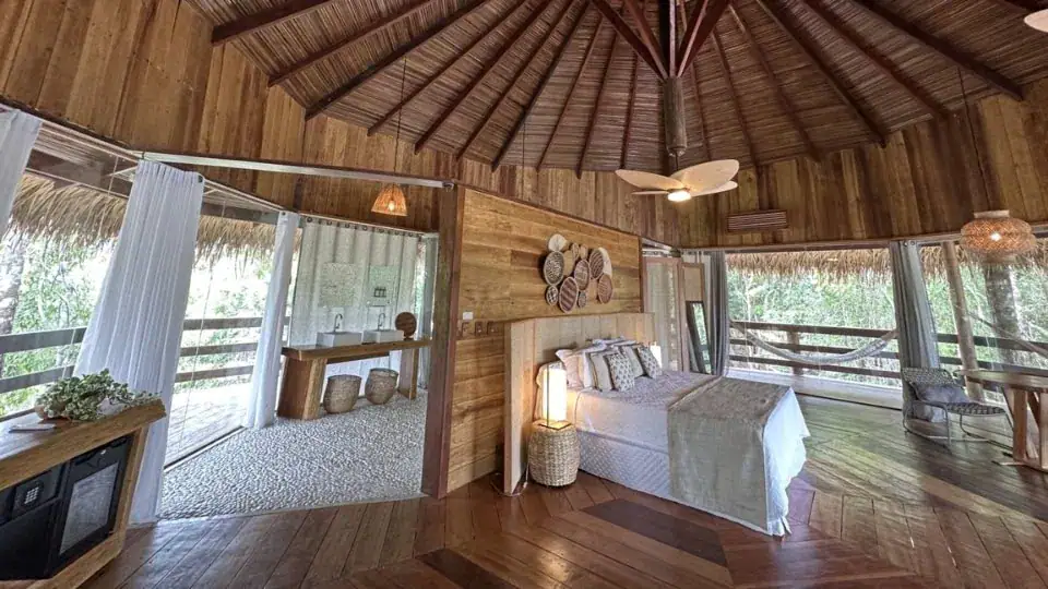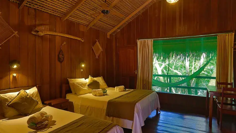 Le Juma Lodge fait revivre la sérénité de l’Amazonie au-dessus d’eaux calmes et limpides. Son architecture sur pilotis se fond harmonieusement dans la forêt, créant une sensation de flottement entre rivière et canopée. Chaque détail, des passerelles en bois aux chambres ouvertes sur la nature, invite les hôtes à ralentir le rythme et à se laisser porter par la jungle. Que vous veniez pour une balade en canoë au lever du soleil ou pour des soirées paisibles au bord de l’eau, c’est ici que l’Amazonie se révèle intime et préservée.
