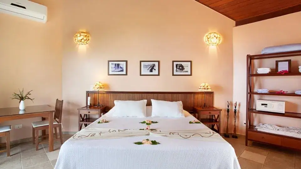 Nichée sur une colline paisible à Boipeba, la Pousada Mangabeiras est entourée de cocotiers, de jardins luxuriants et offre une vue imprenable sur l’Atlantique. Ses bungalows, où matériaux naturels et design insulaire chaleureux se conjuguent, créent une atmosphère sereine, idéale pour des matins paisibles et des après-midis pieds nus. Que vous vous prélassiez au bord de la piscine, descendiez vers la plage ou admiriez le ciel se teinter de rose au coucher du soleil, laissez-vous bercer par le doux rythme de Boipeba.