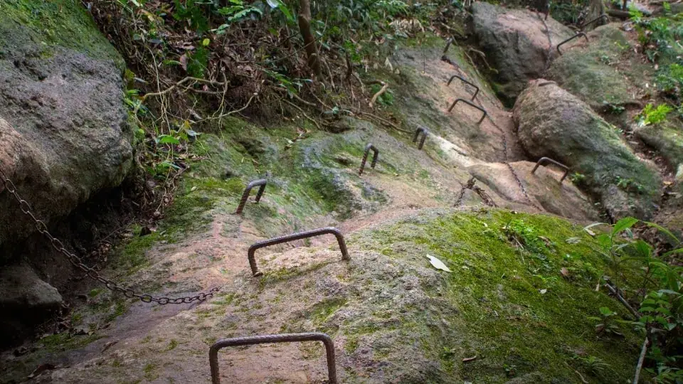 - Difficulté modérée – le sentier comprend des escaliers, des rochers et des passages boueux.
