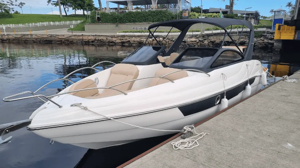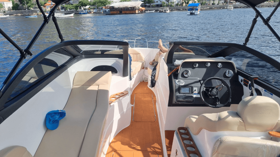 Le Boa Nova III est un hors-bord de 8 mètres conçu pour les clients en quête d’une expérience nautique plus active et flexible. Pouvant accueillir jusqu’à 10 personnes, il est idéal pour les petits groupes souhaitant se déplacer facilement et profiter pleinement de leur séjour à Rio de Janeiro. Contrairement aux yachts ou voiliers plus grands, un hors-bord permet de couvrir une plus grande distance, d’atteindre différents endroits plus rapidement et de vivre une expérience plus spontanée. Que vous souhaitiez faire une pause baignade, explorer différents quartiers ou simplement longer la côte à votre rythme, le Boa Nova III offre une configuration simple et efficace pour répondre à toutes vos envies. C’est l’option idéale pour découvrir Rio de manière plus active et moins encadrée.