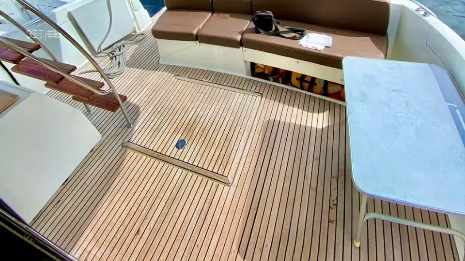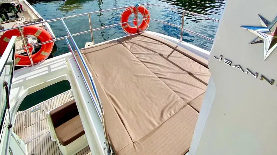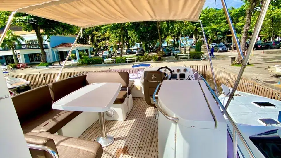 Le Velasco 43′ est un bateau que nos clients apprécient particulièrement. Son aménagement confortable et son ambiance décontractée en font un choix idéal pour les familles comme pour les groupes d’amis. La cabine inférieure est un atout appréciable pour ceux qui souhaitent se reposer un instant pendant la croisière. L’espace généreux à l’arrière est sans doute le point fort le plus apprécié : parfait pour se détendre, danser, savourer des caïpirinhas ou se baigner. C’est un choix fiable et agréable qui garantit une expérience réussie à chaque fois.