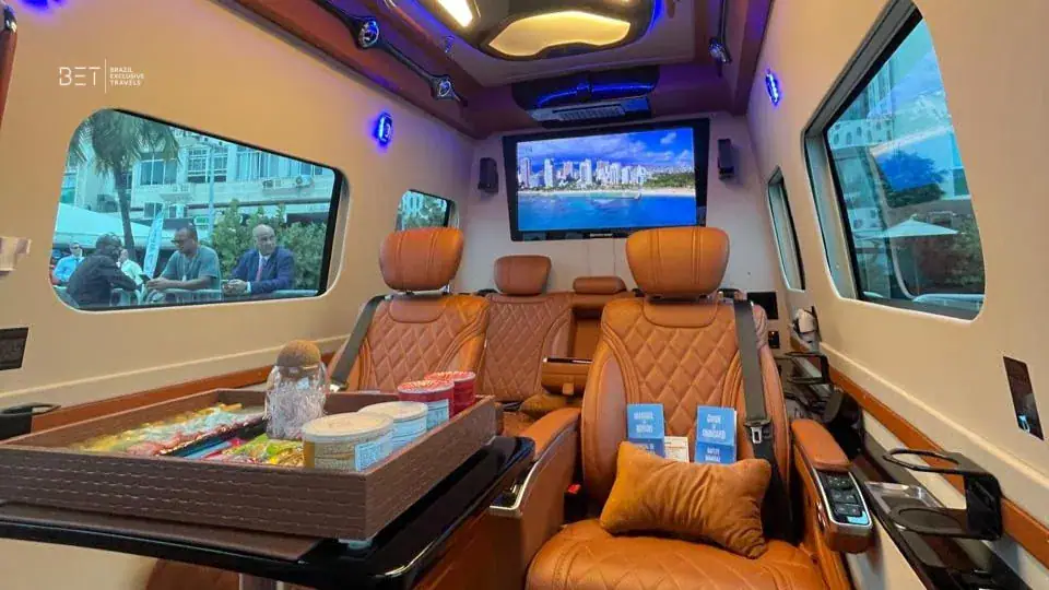 Le Jet Van transforme chaque trajet en une expérience haut de gamme. Ses sièges inclinables moelleux, son intérieur de style lounge et son système de divertissement offrent aux passagers un confort comparable à celui d’un jet privé. Pour les clients en quête d’intimité, d’élégance et d’un voyage tout confort à Rio, que ce soit pour affaires, événements ou loisirs, le Jet Van est un choix incomparable.