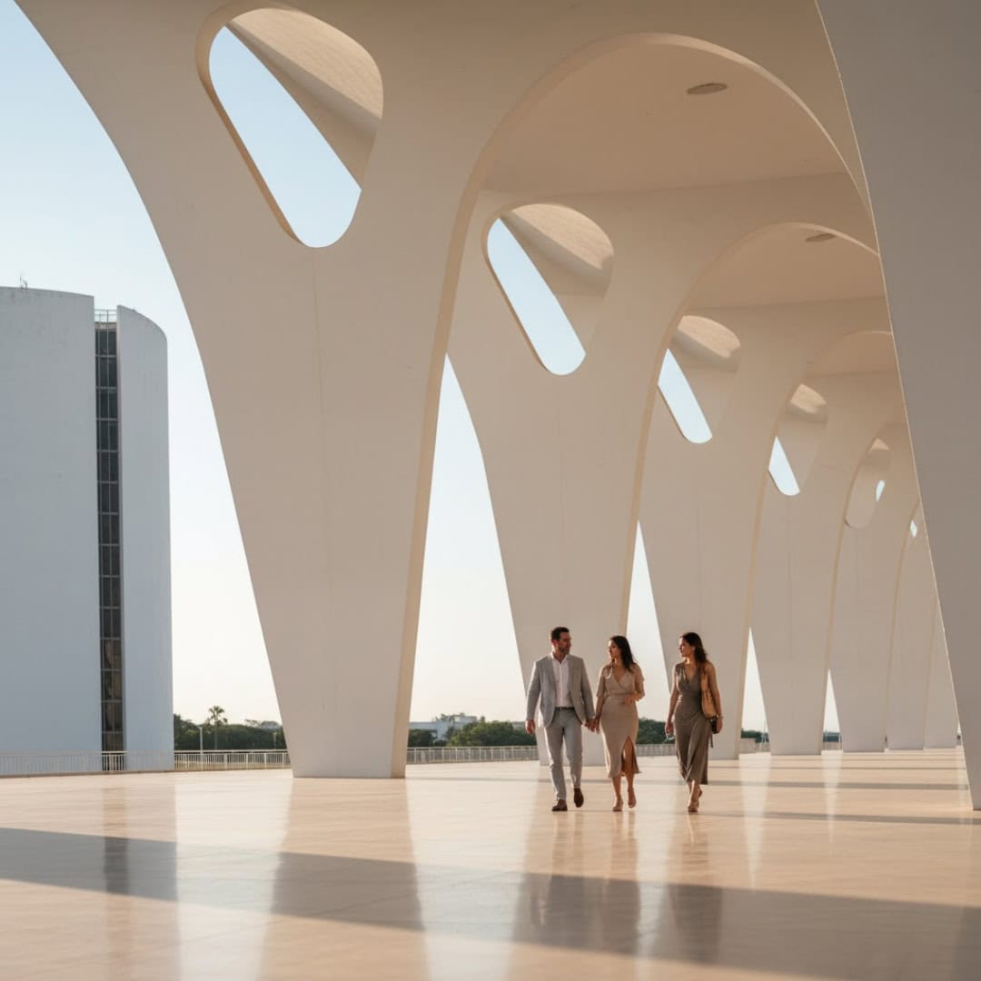 Concebida pelo presidente Juscelino Kubitschek e projetada pelo lendário arquiteto Oscar Niemeyer, Brasília é uma cidade diferente de qualquer outra. Suas ruas formam o contorno de um avião, seus edifícios erguem-se como esculturas e sua luz – nítida e dourada – define tudo o que toca.