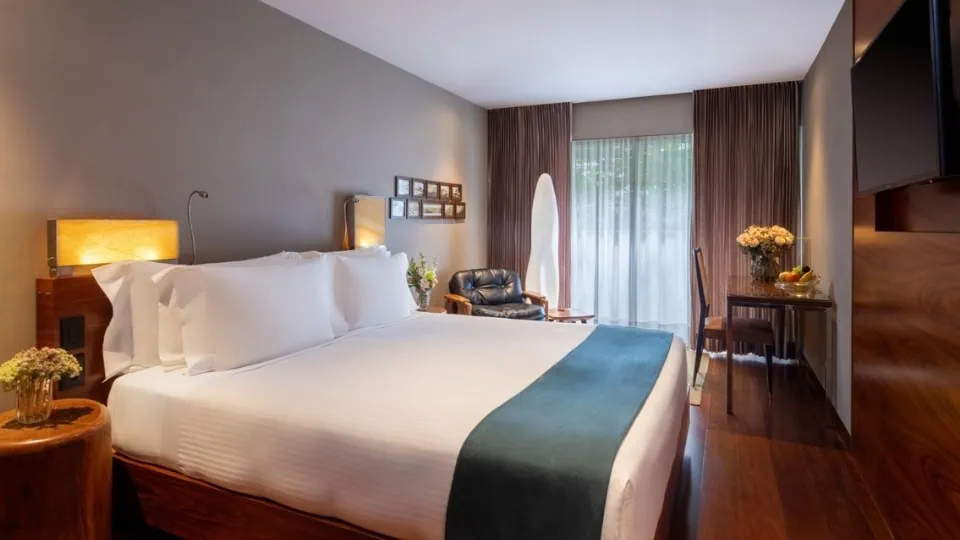 Os hóspedes sempre nos dizem que o pôr do sol visto do terraço parece um filme: música no ar, céu rosado e Ipanema brilhando lá embaixo.
