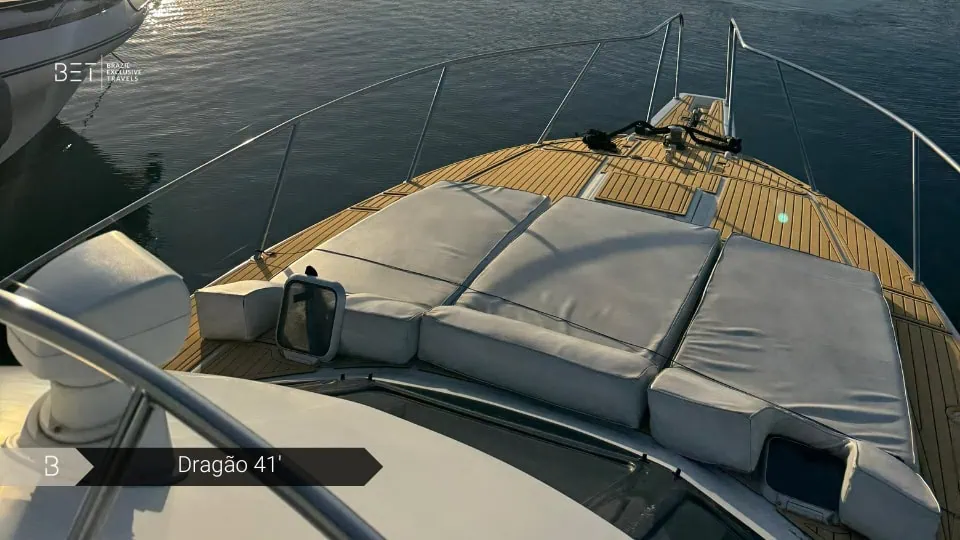 Suba a bordo do Dragão 41′, um barco pequeno de 41 pés localizado no Rio de Janeiro. Ideal para passeios entre amigos, essa lancha oferece espaço generoso para até 17 convidados e recursos que garantem um passeio suave.