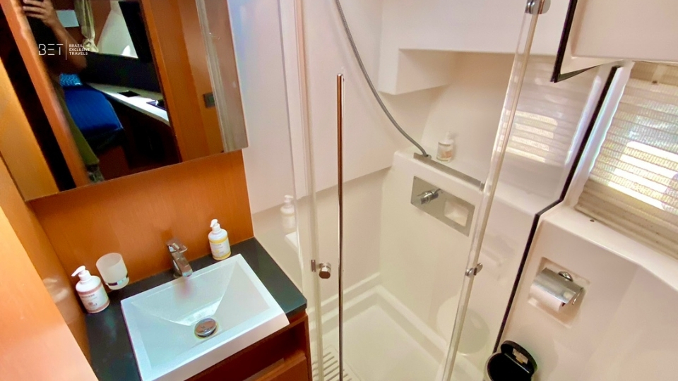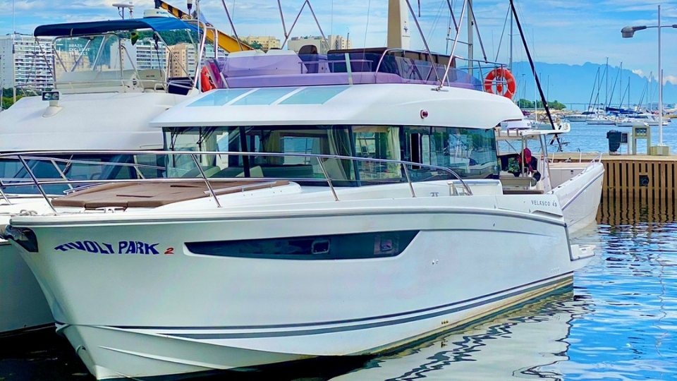 O Velasco 43′ é um barco que nossos clientes realmente apreciam. É ideal tanto para famílias quanto para grupos de amigos, graças ao seu layout confortável e ambiente descontraído. A cabine no andar inferior é um toque agradável para quem deseja descansar um pouco durante a viagem. O que os clientes mais mencionam é a área espaçosa na parte de trás – perfeita para relaxar, dançar, saborear caipirinhas ou mergulhar na água. É uma opção confiável e agradável que sempre proporciona uma boa experiência.