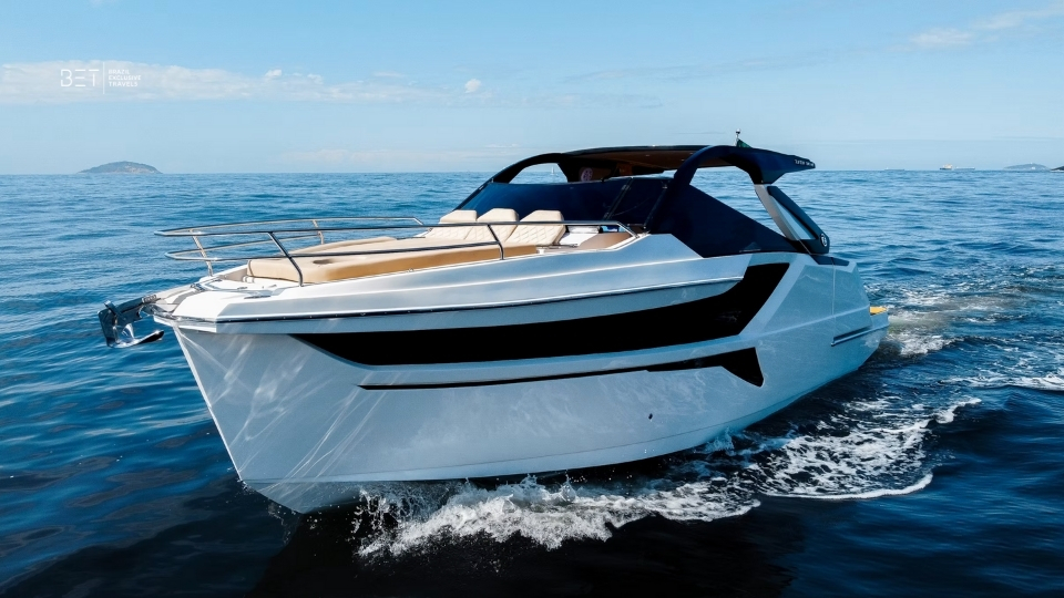 O Zath 328HT oferece um layout acolhedor e aberto que transmite uma sensação convidativa no momento em que você embarca. Com seu deck bem distribuído e a área protegida pelo hardtop, ele acomoda confortavelmente pequenos grupos de 6 a 8 pessoas que desejam um dia simples no mar, sem sensação de aperto. A navegação é suave e estável, mesmo em trechos mais longos entre praias, e o cockpit abrigado torna a experiência agradável tanto sob sol quanto em ventos leves.