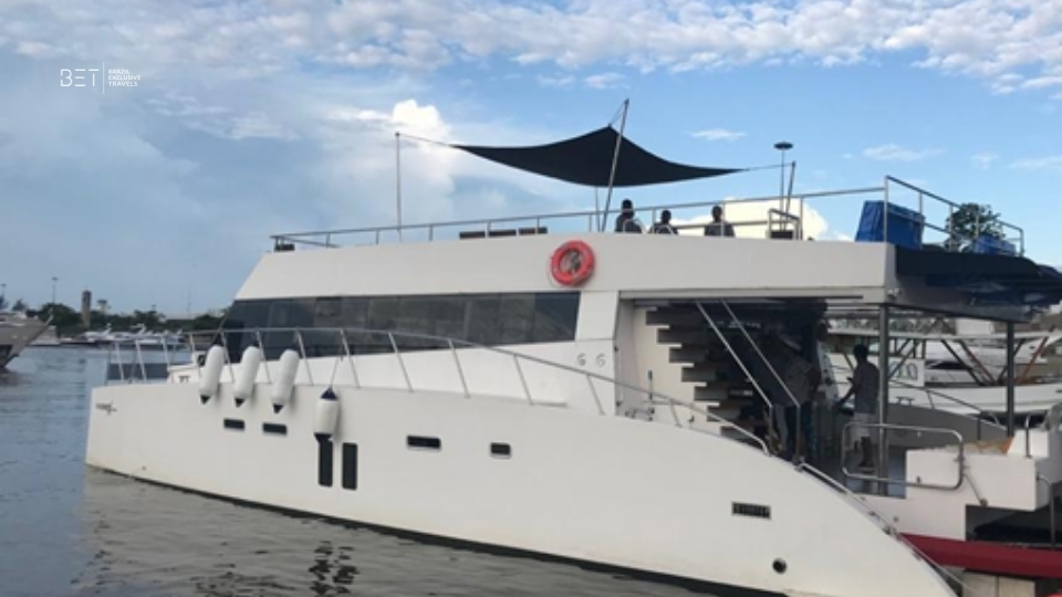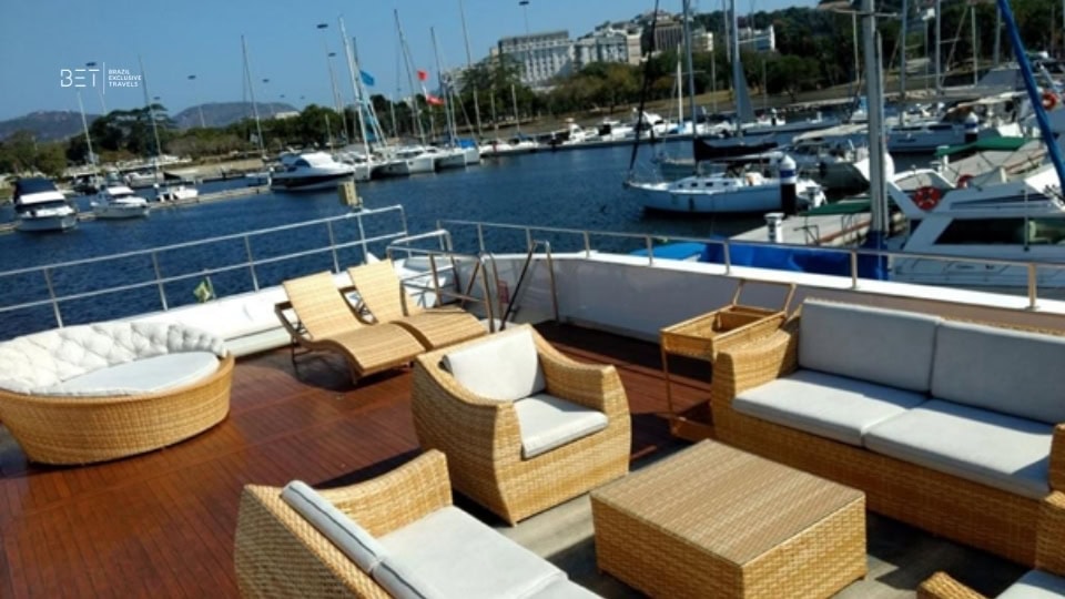 Navigation is smooth and stable, even in mild waves, making the trip pleasant whether you’re cruising along the coast or anchored near a beach. What distinguishes this vessel is its ability to suit a variety of outings, from lively parties and corporate events to serene family or couple cruises and sunset gatherings. Embarkation typically takes place from a central marina in Rio, giving easy access to bays and coastal vistas as you set off.