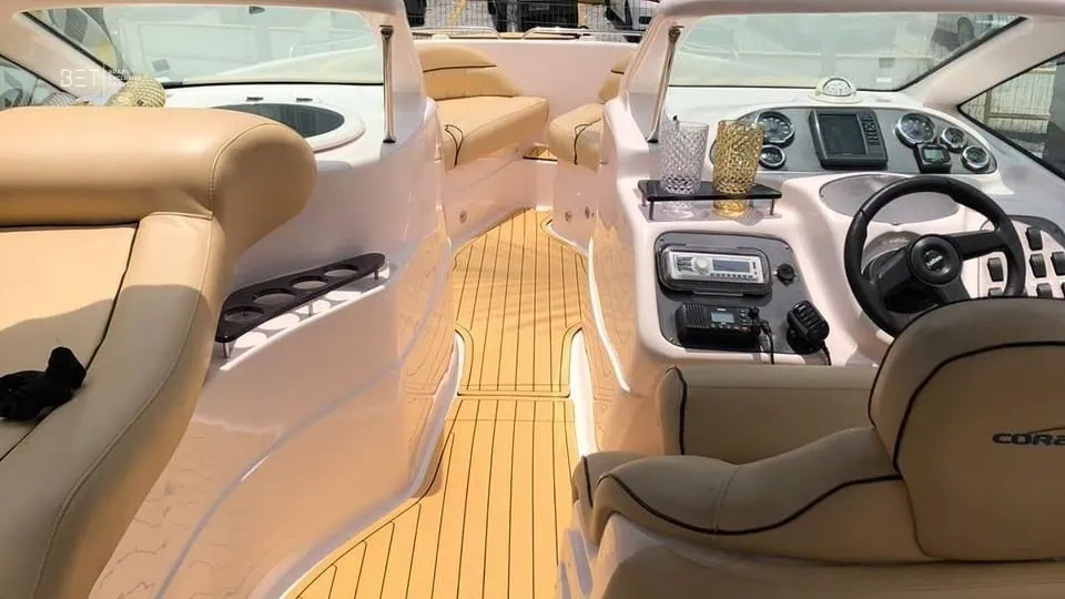 The Cobra 28 is a compact and efficient 28-foot speedboat perfect for intimate outings or small group trips along Rio’s coast and nearby islands. It fits up to 10 guests comfortably and is ideal for families, couples or friends seeking a relaxed but lively day at sea. The boat features a cozy private cabin, a social deck area and an open bow section for sunbathing or gazing at the coastline.