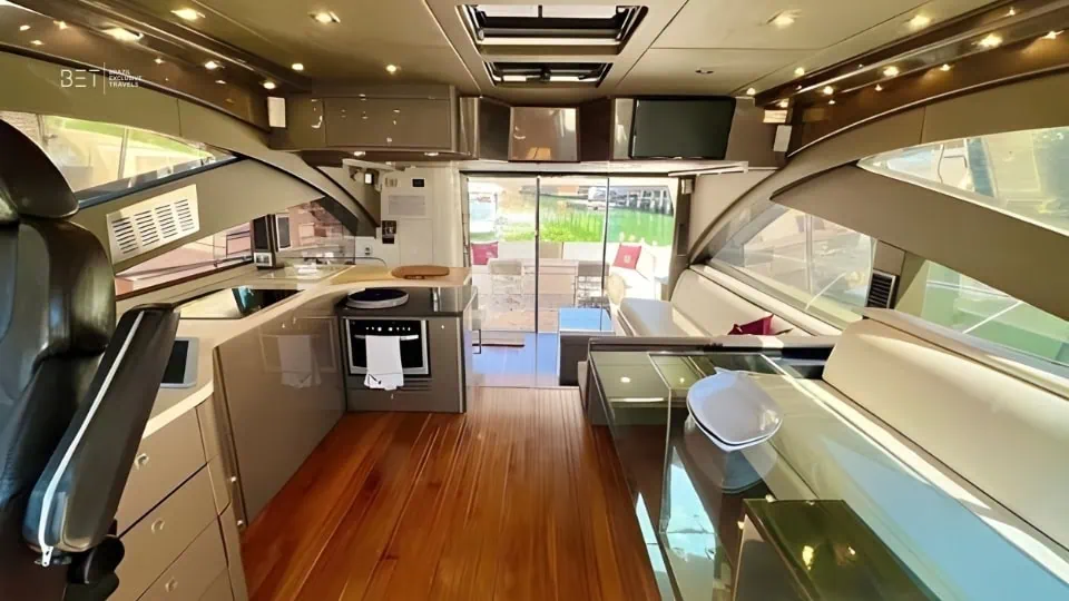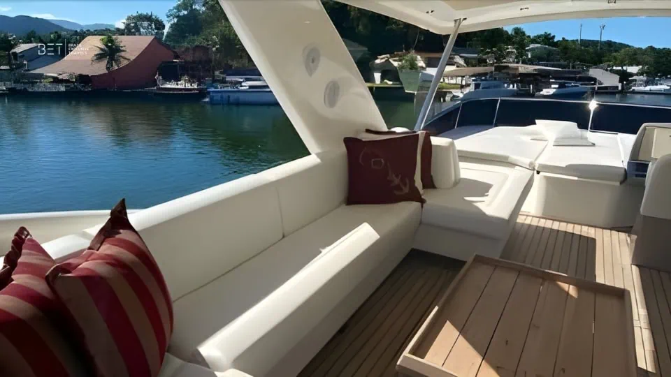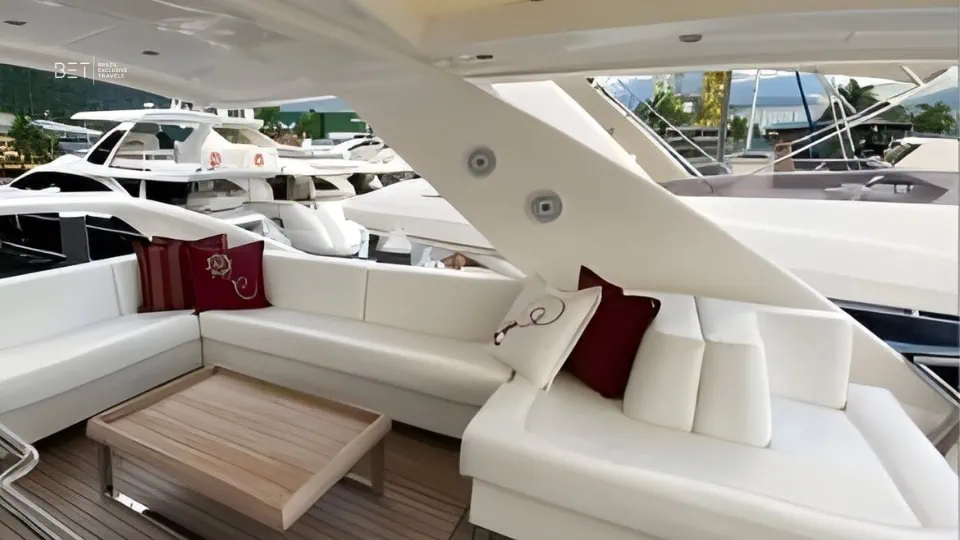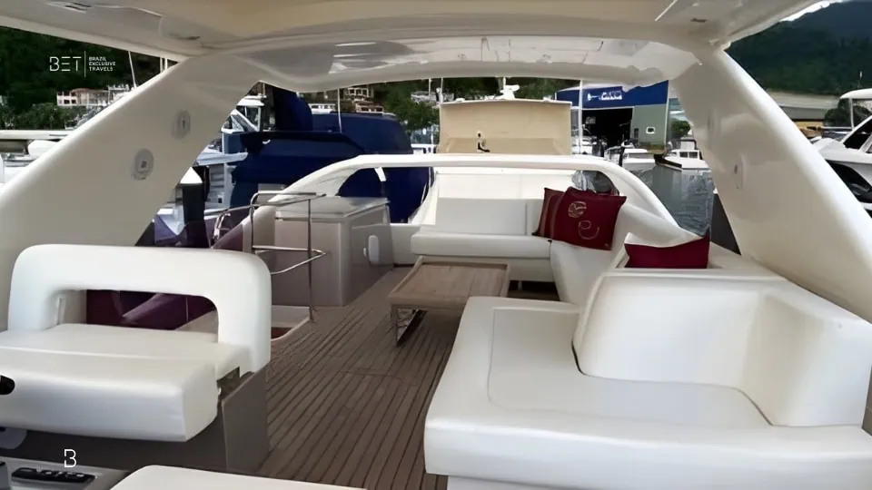 Schaefer 62′ is one of our top picks when comfort, space and reliability are priorities. With roomy cabins, generous deck and thoughtful amenities, it’s perfect for families, groups of friends or anyone who wants a full-day yacht experience without compromise. Many clients tell us they appreciate the smooth ride, the ease of boarding, and how everything feels relaxed yet premium on board. For an effortless, enjoyable cruise along Rio’s waters – this yacht rarely disappoints.