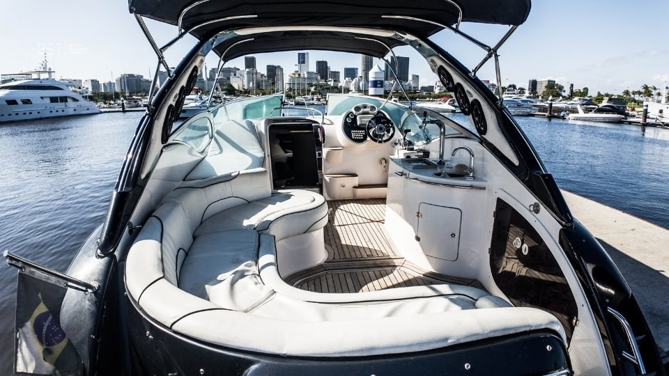 The FS310 Black Pearl is a stylish 31 foot speedboat created for relaxed and enjoyable days on the water. Its layout includes an interior cabin, a comfortable outdoor seating area and a bow sunbed that invites guests to stretch out and enjoy the view. The boat accommodates up to 10 people, which makes it suitable for families, groups of friends or couples who want a private and comfortable experience.