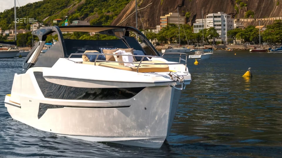 The Zath 328HT offers a cozy, open layout that feels inviting the moment you step aboard. With its well-distributed deck and protected hardtop area, it comfortably hosts small groups of 6–8 people who want an easy day at sea without feeling crowded. Navigation is smooth and steady, even on longer stretches between beaches, and the sheltered cockpit makes the experience pleasant in both sun and light wind. What really stands out is how adaptable the boat is, families often choose it for relaxed afternoons, while couples enjoy intimate cruises and sunset outings. It also works well for groups of friends looking for a compact, social atmosphere. Departures typically take place from Marina da Glória, placing guests right at the entrance of Guanabara Bay.